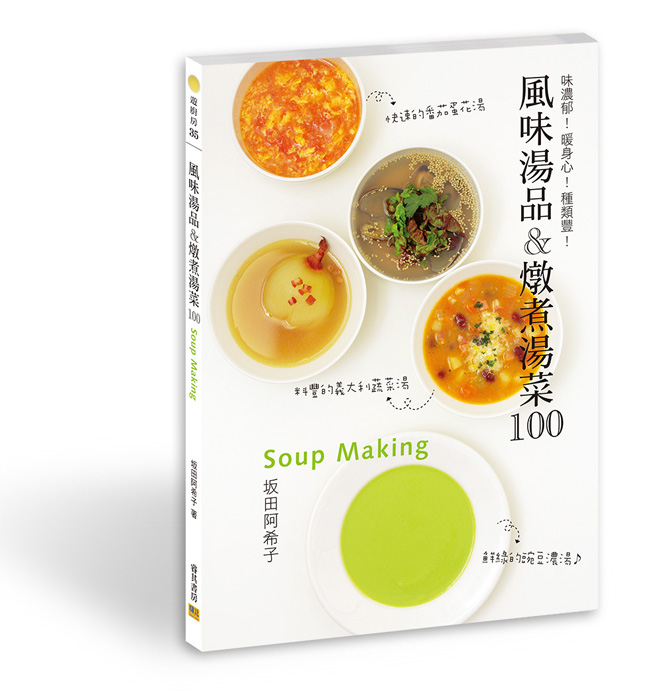本書囊括了義大利蔬菜湯、焗烤洋蔥湯、蛤蜊巧達濃湯及泰式海鮮酸辣湯等為人熟知的人氣必備湯品;南法風味魚湯、西班牙番茄冷湯、義式雞蛋麵包湯、摩洛哥蔬菜豆湯等口味獨特的西式經典湯品;白菜獅子頭湯、韓式糯米雞湯、鮭魚酒粕湯等中式、韓式和日式湯品;以及蛤蜊番茄燉豬肉、俄羅斯甜菜湯、愛爾蘭燉肉等簡易燉煮料理。再加上美味高湯的基本作法、各種配料與佐湯用麵包等,由100個製湯的美味項目所構成的湯品全書。