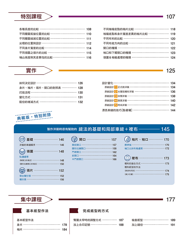 依照風格分類,收錄了72種身片、29種袖片及29種領片的豐富變化,