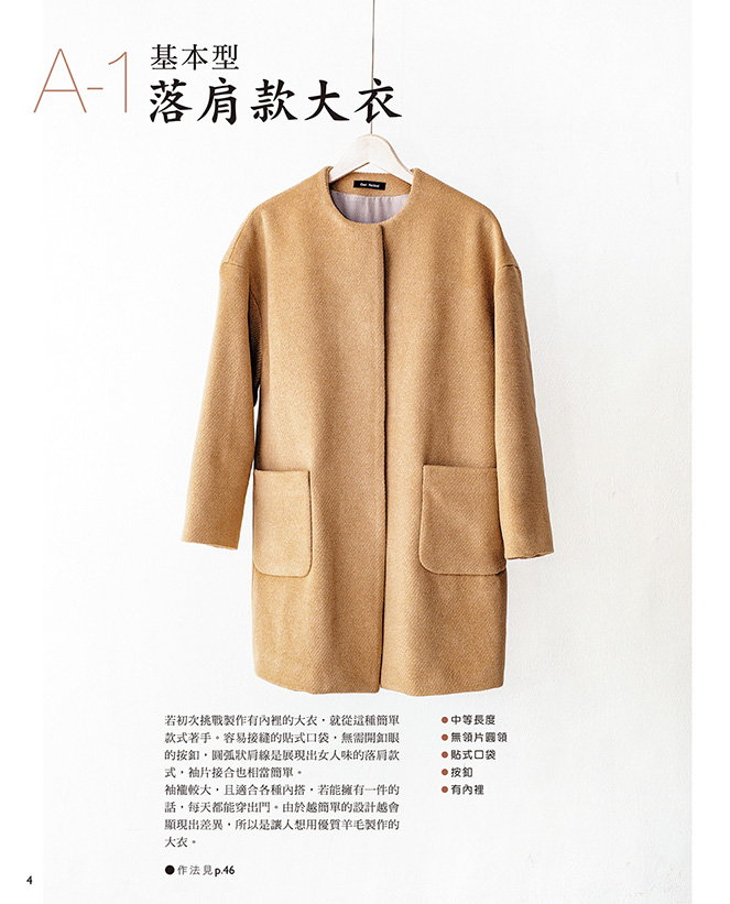 ‧以5種基本款製作18種樣式,只要這一本就能滿足經典大衣的製作。